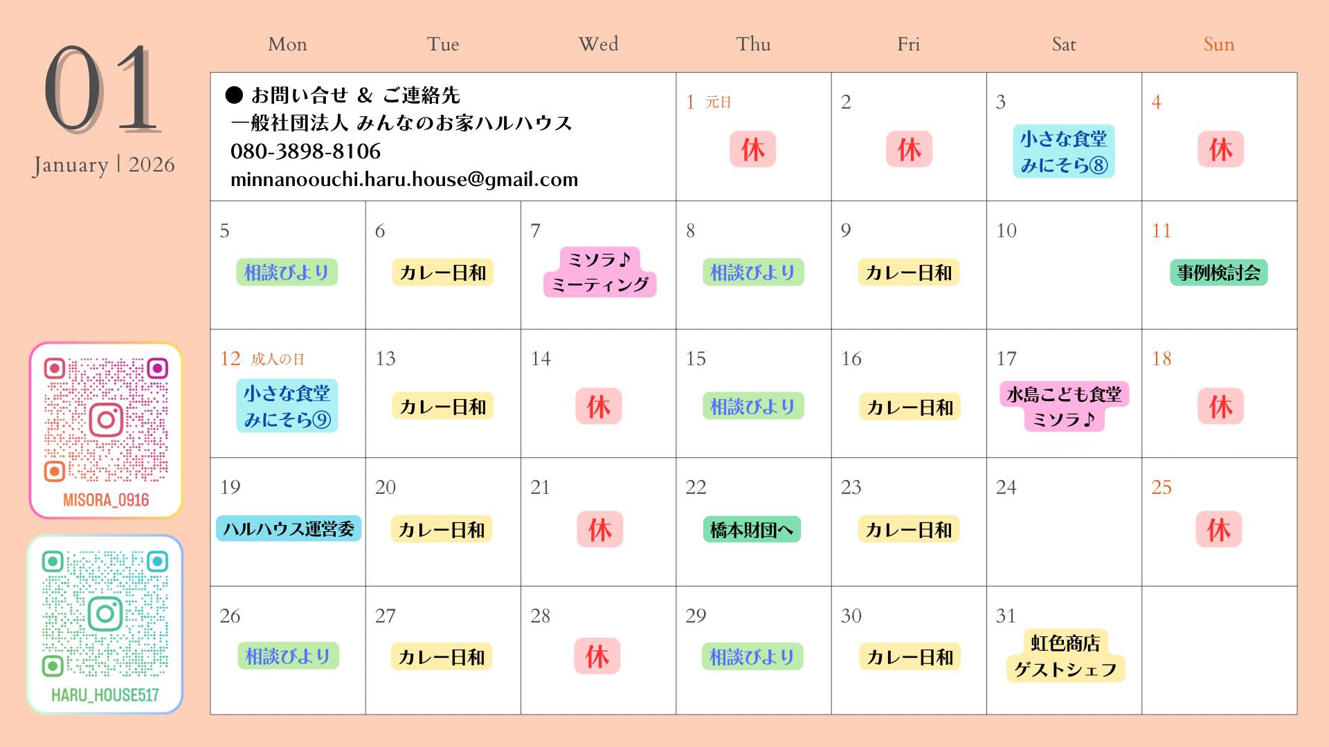 1月のスケジュール